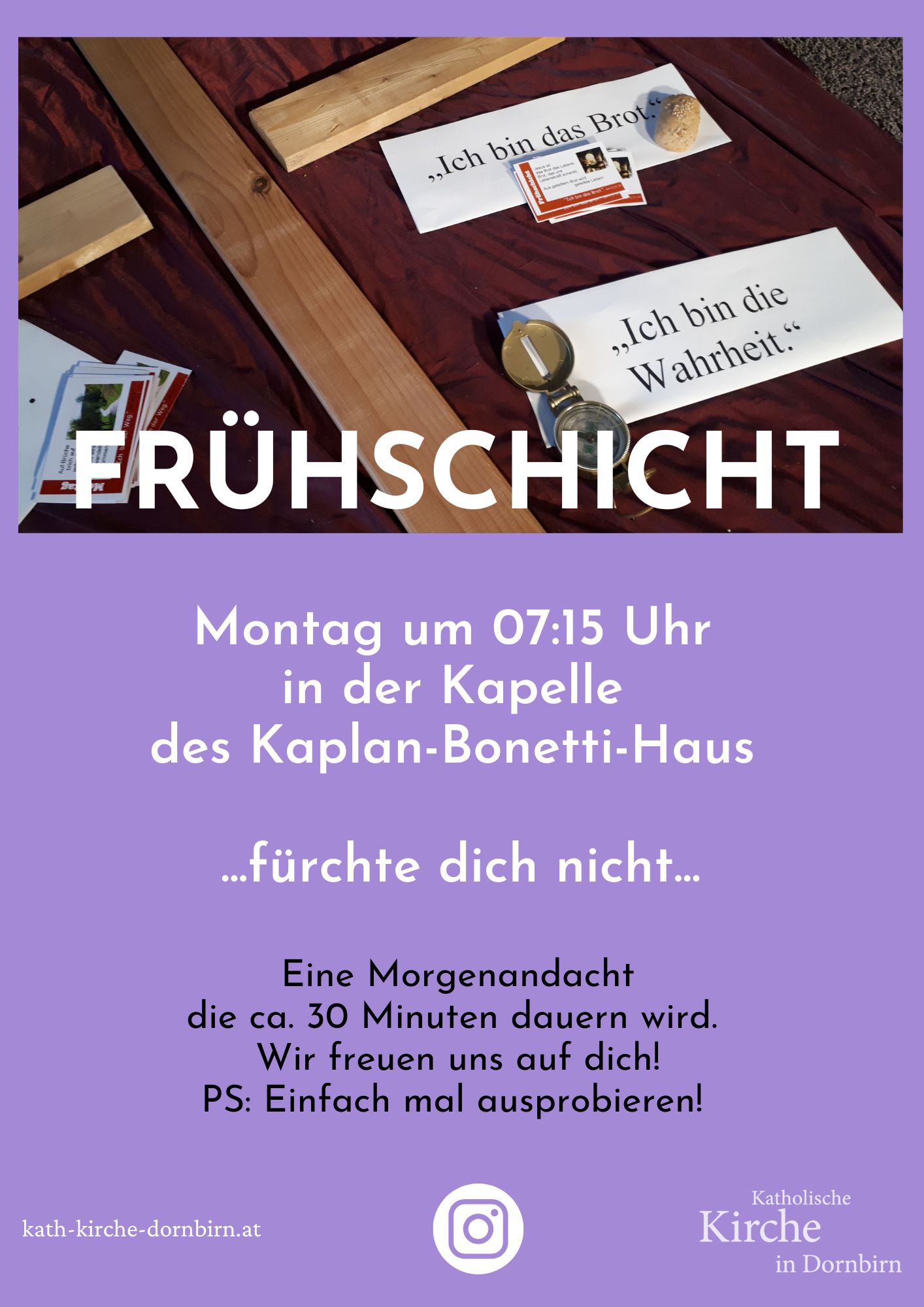 Die Frühschicht ist eine Morgenandacht, die ca. 30 Minuten dauert.